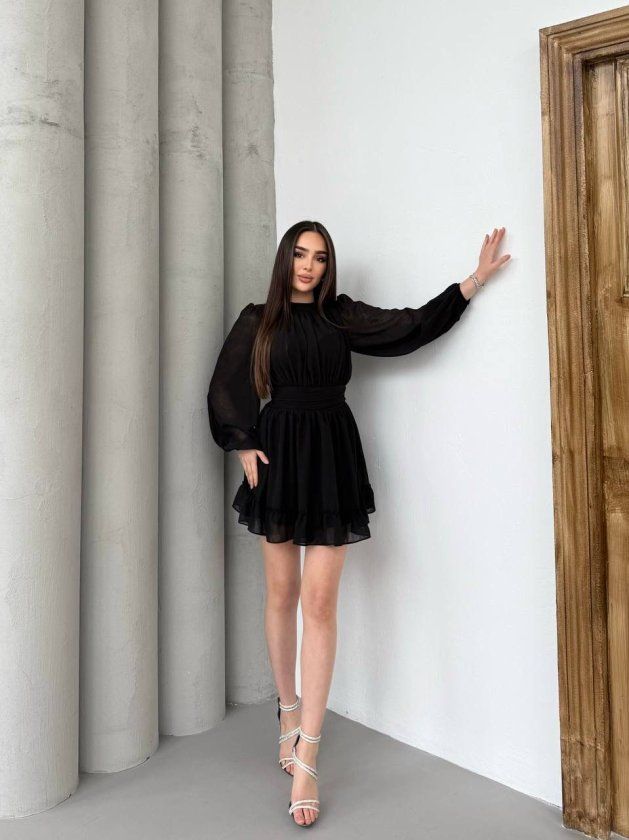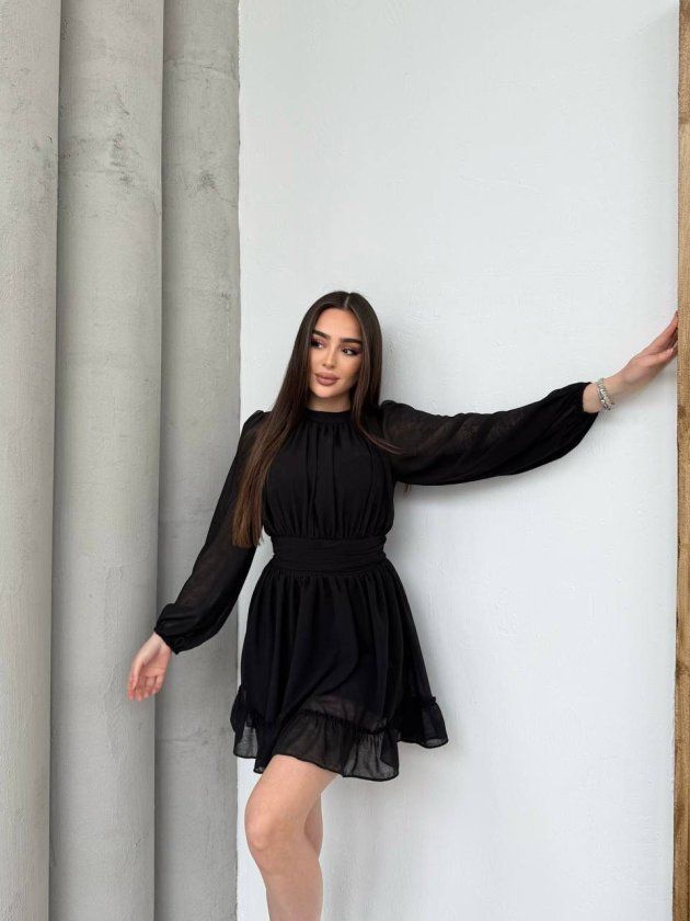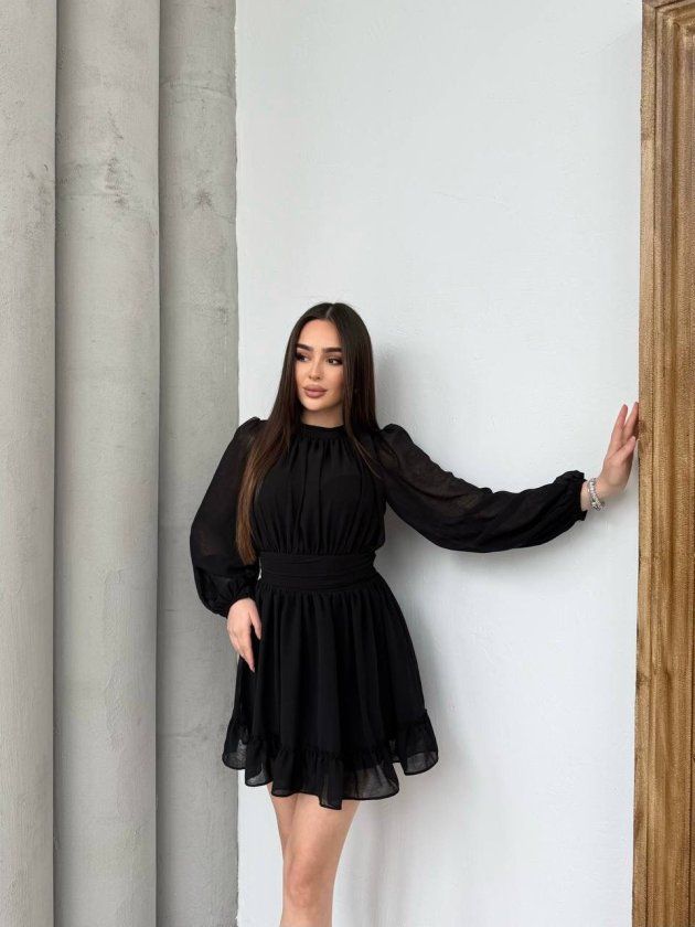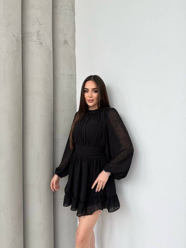 Kadın Yarım Balıkçı Yaka Kolları Transparan Astarlı Full şifon Elbise