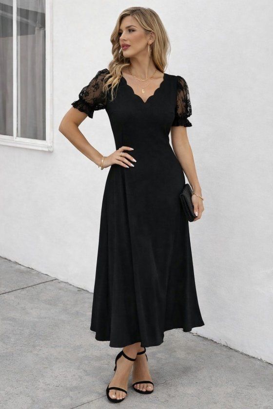 Kadın Kısa Kollu V Yakalı Uzun Janjan Elbise
