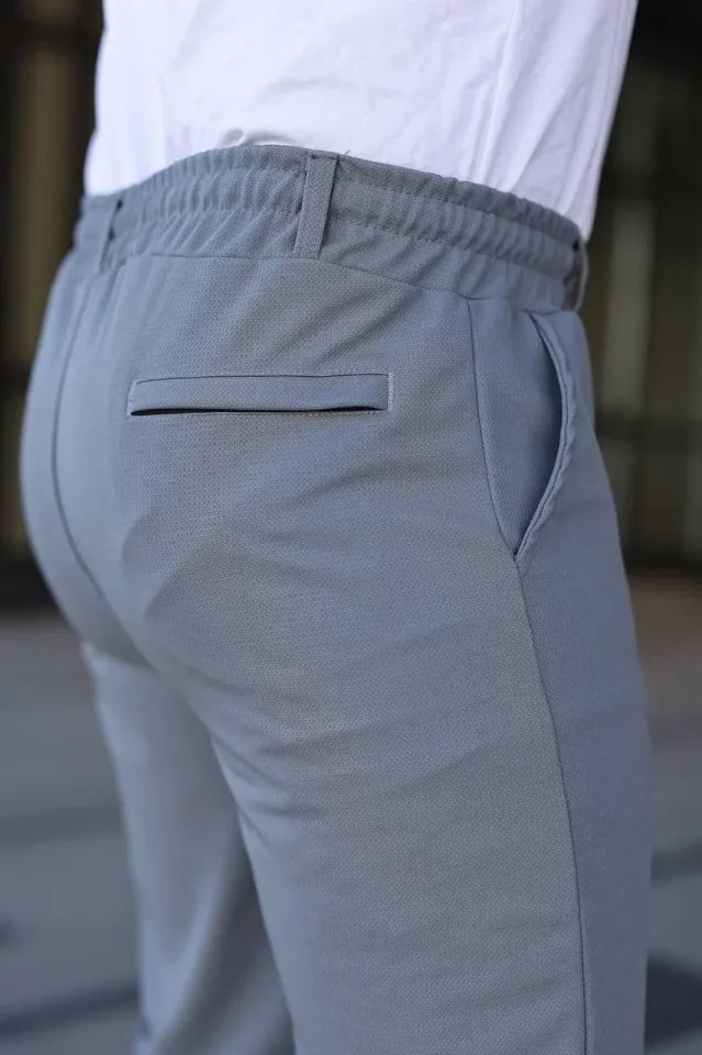 Erkek Diagonel Kumaş Duble Paça Cepli Bağcıklı Bel Lastikli ŞORT - Gri