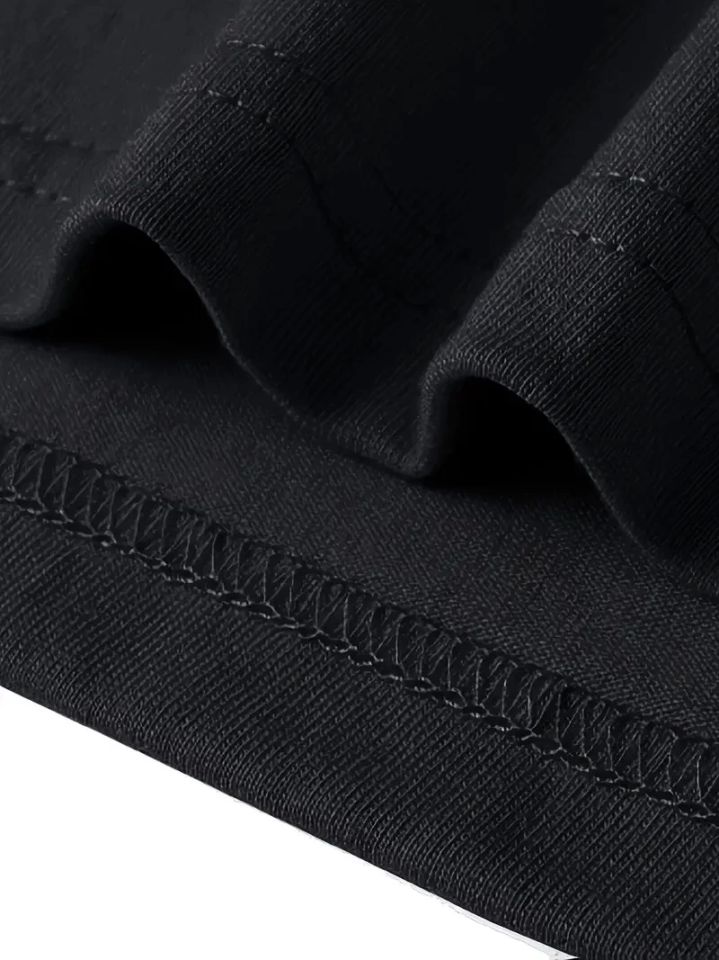 Baskılı Oversize Bisiklet Yaka T-shirt - Siyah