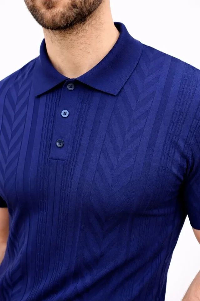 Erkek Yazlık Triko Tişört Kısa Kol Polo Yaka Düğmeli T-Shirt - Lacivert