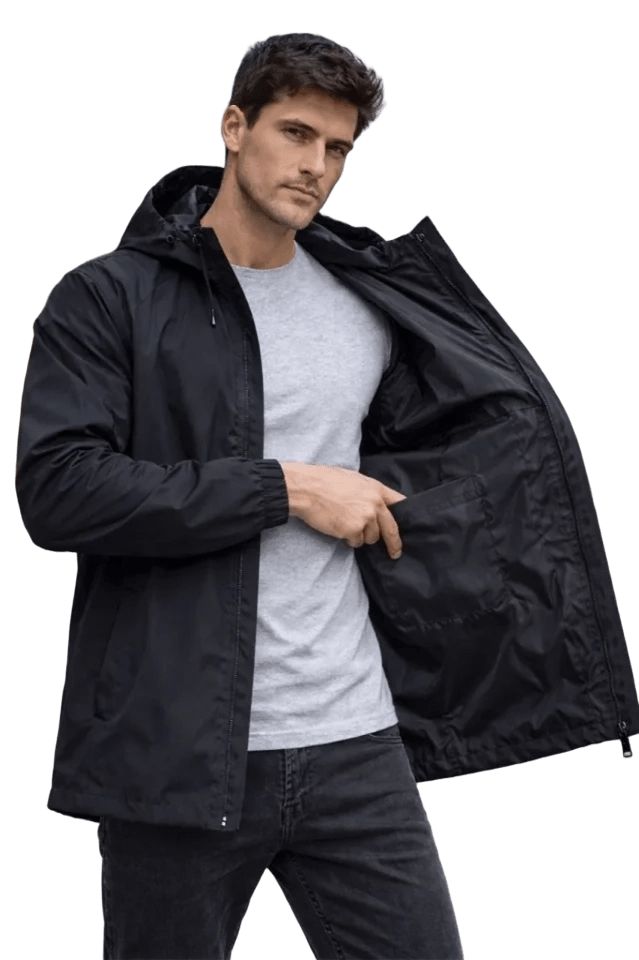 Erkek Kapüşonlu Su İtici Rüzgarlık Ceket - Mevsimlik Hafif Mont (Siyah)