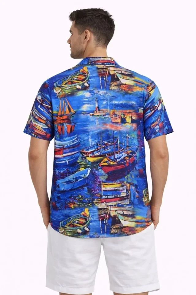 Erkek Marin Desenli Kısa Kol Gömlek Yazlık Rahat Kalıp Dijital Baskılı - Desenli