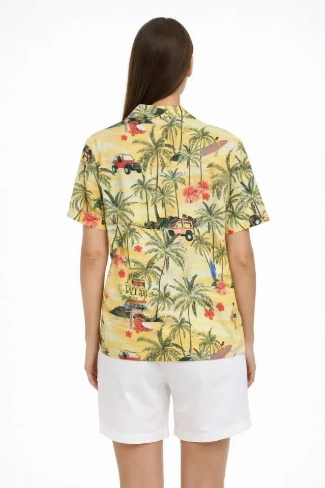 Gün Batımı Tropikal Desenli Kısa Kol Gömlek Şort Takım Yazlık Rahat Kalıp - Desenli