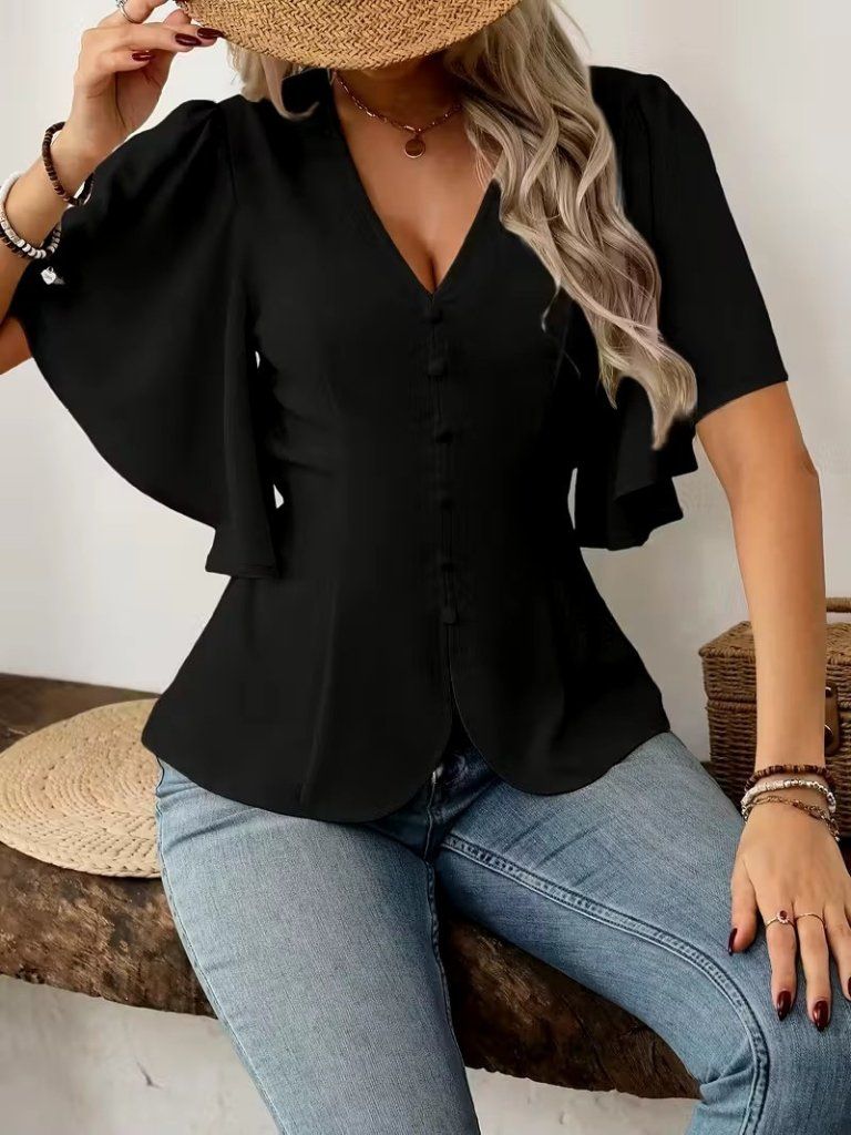 Kadın Kısa Kollu önden Düğmeli Ithal Krep Bluz