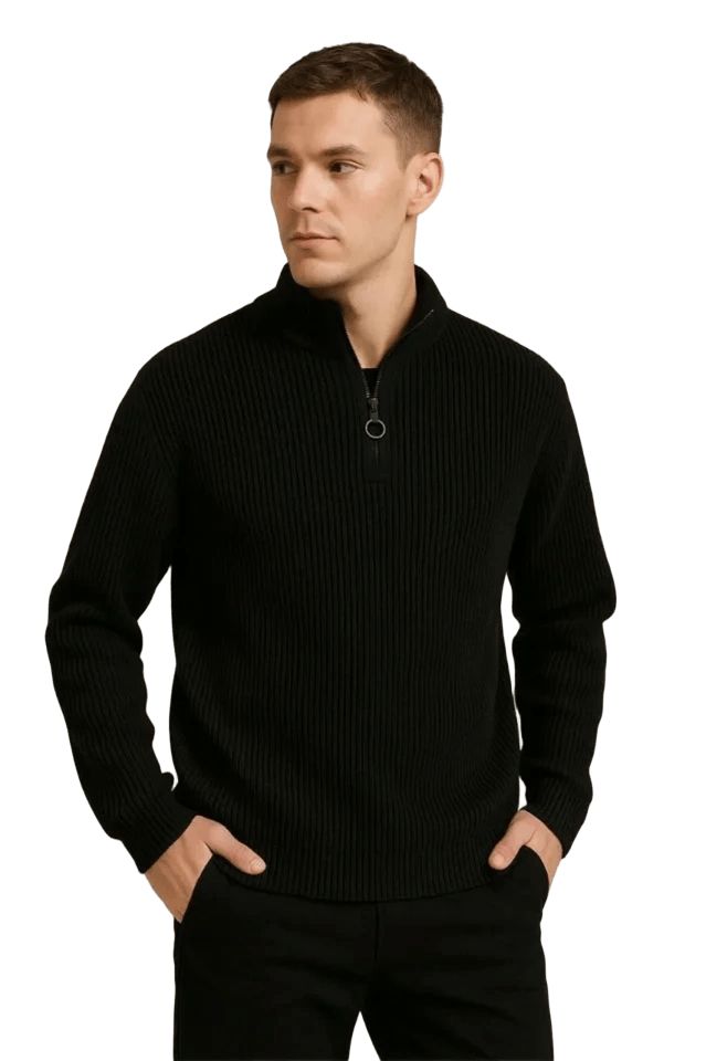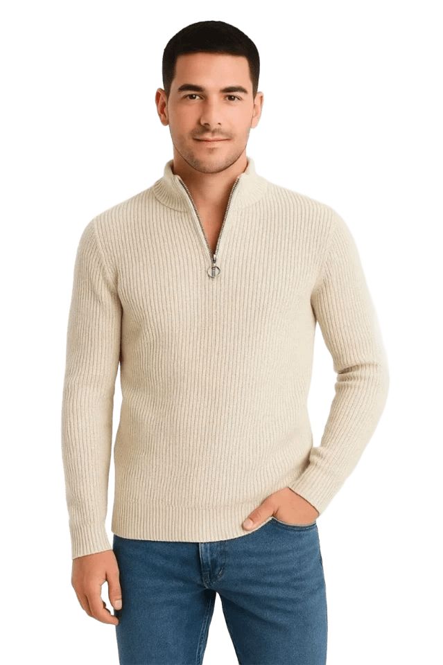 Modern V Yaka Fermuar: Şıklığı ve fonksiyonelliği birleştiren fermuar detayı, kazağa sportif ve maskülen bir hava katar.