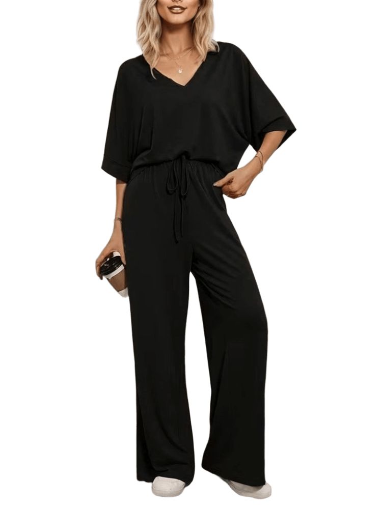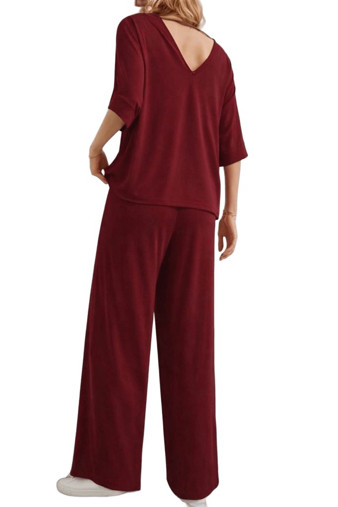 Kadın Kısa Kollu V Yakalı Viskon Bluz ve Pantolon İkili Takım