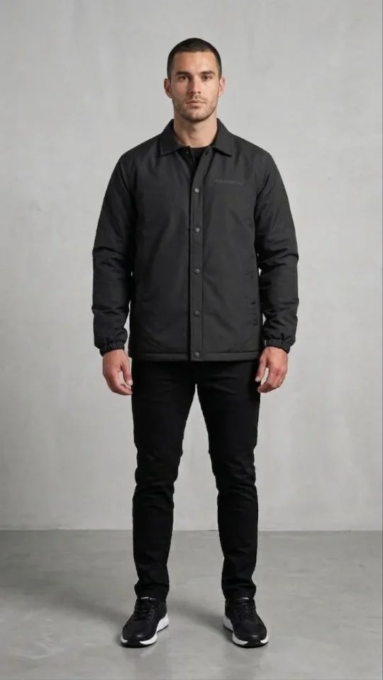 Erkek Yağmur İtici İç Astarlı Çıtçıtlı İç Cepli Dış Cepli Mevsimlik Mont - Siyah
