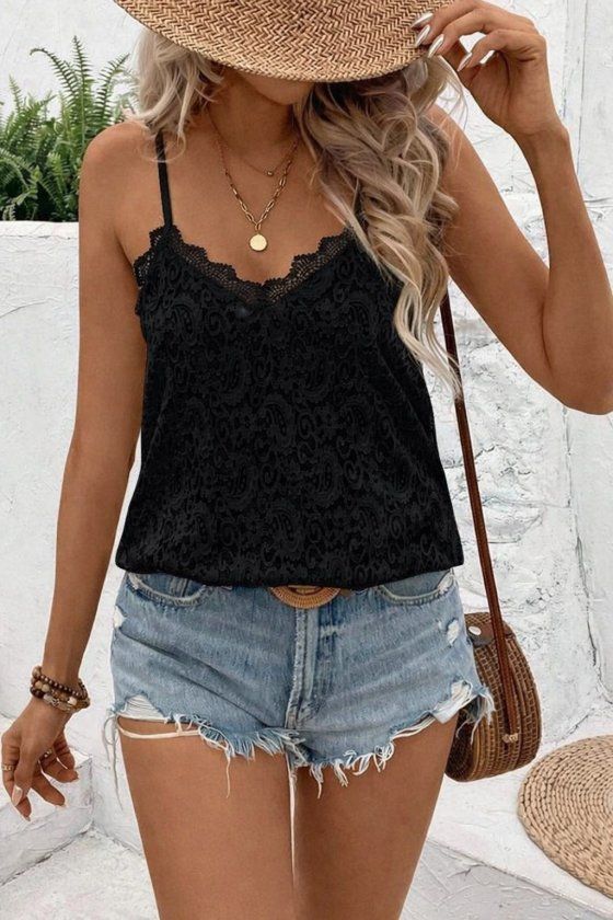 Kadın Ip Askılı V Dantel Yakalı Dantel Bluz