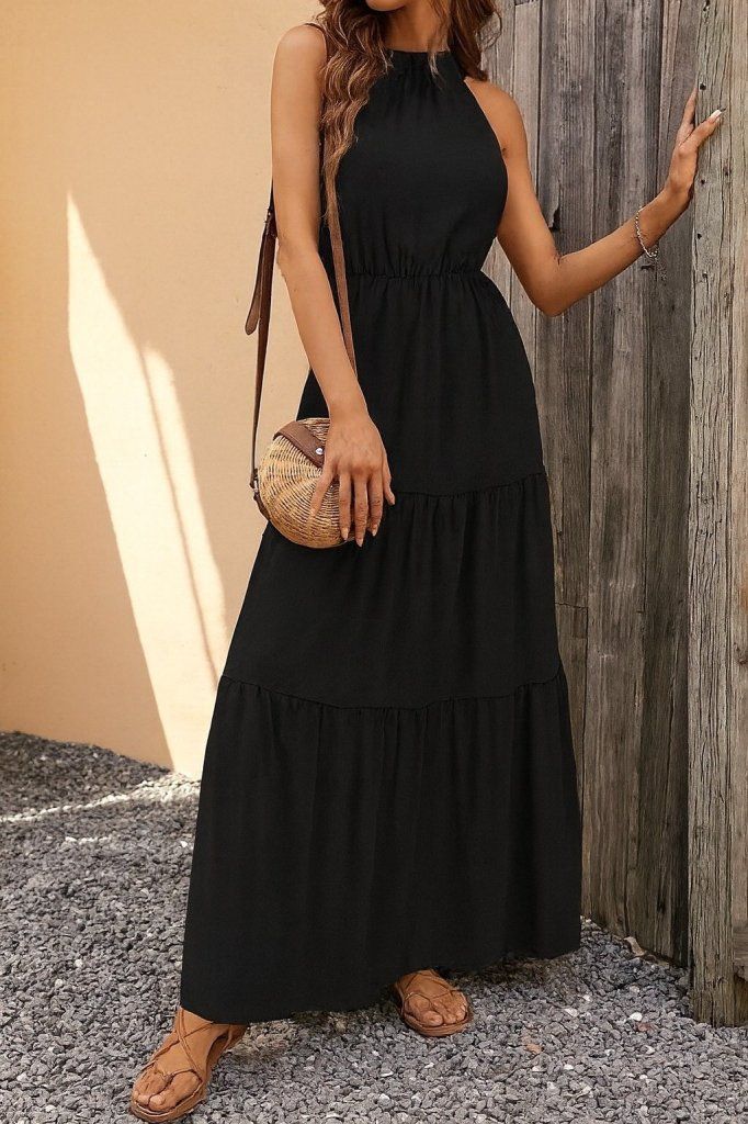 Kadın Kolsuz Halter Yaka Beli Lastiklidesenli Mikro Elbise