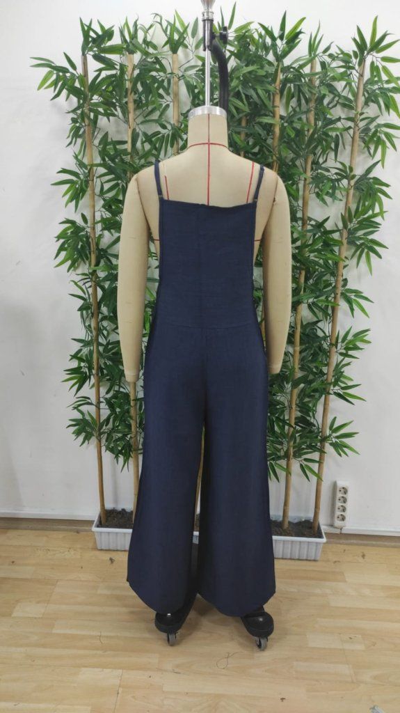 Kadın Askılı Yandan Fermuarlı Geniş Paçalı Valencia Tulum