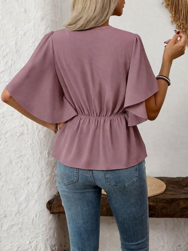 Kadın Kısa Kollu önden Düğmeli Ithal Krep Bluz