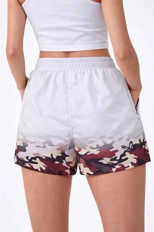 Deniz Şortu Fermuarlı Cepli File Astarlı Hızlı Kuruyan Premium - Beyaz