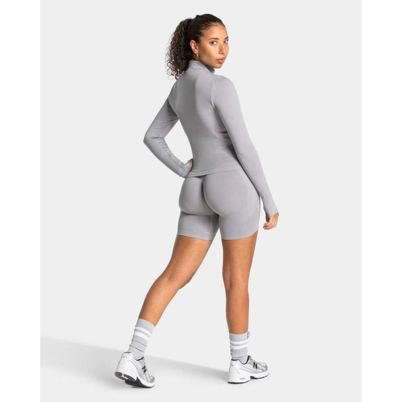 Teveo Gri Fermuarlı Seamless Spor Ceket - Modern ve Fonksiyonel Tasarım