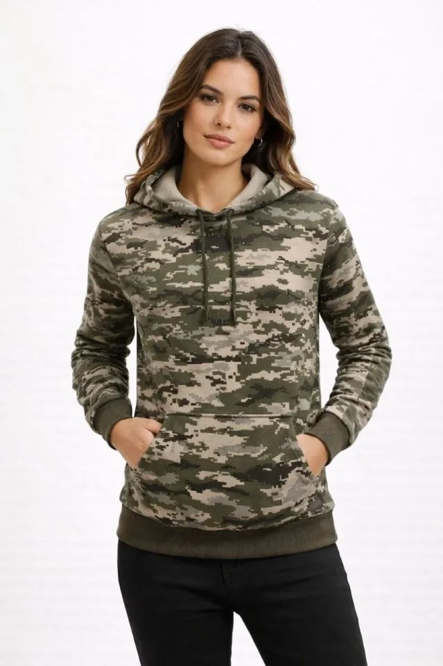 Kamuflaj Desenli 2 İplik 4 Mevsim Kapüşonlu Kanguru Cepli Hoodie Sweatshirt - Kamuflaj