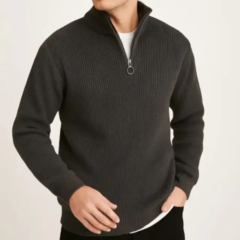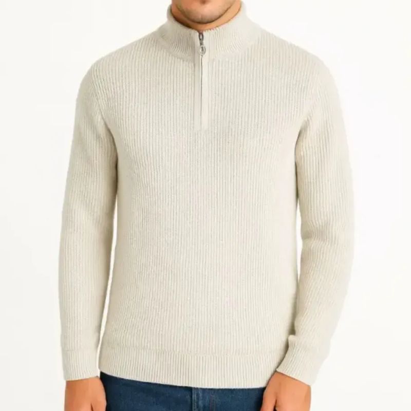 Erkek Yarım Fermuarlı Selanik Örgü Triko Kazak