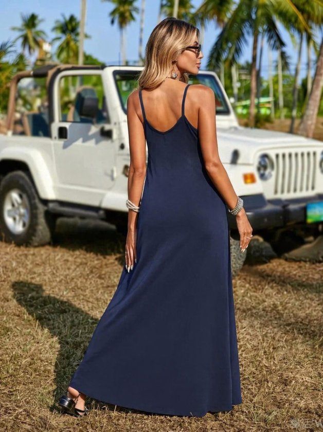 Kadın Askılı V Yakalı Etnik şerit Detaylı Uzun Viskon Elbise