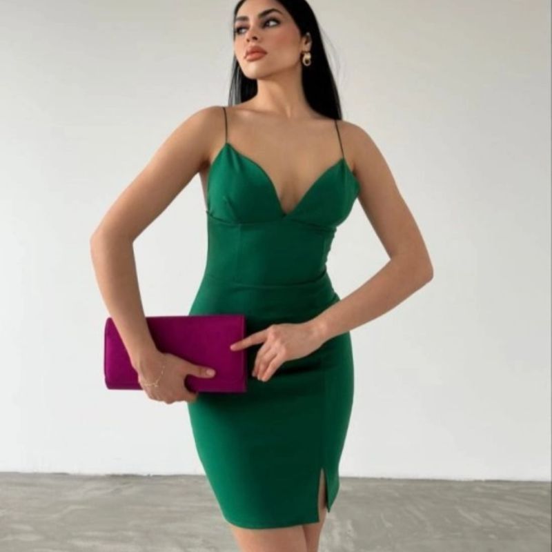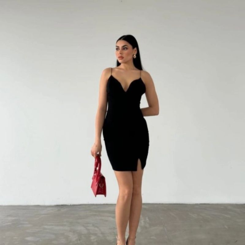 Dalgıç krep kumaşın vücudu saran ve toparlayan özel dokusunu minimalist bir tasarımla birleştiren bu mini elbise, hem iddialı hem de zarif bir silüet sunuyor. İnce askıları ve vücut hatlarını vurgulayan kalıbı sayesinde özel davetlerden gece eğlencelerine kadar her ortamda tüm bakışları üzerinize çeker. Kumaşın kendine has tok duruşu, formunu uzun süre korumasını sağlarken, mini boyuyla modern ve dinamik bir stil vadediyor.