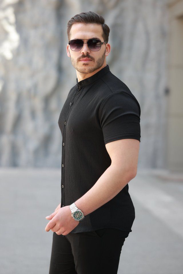 Erkek Hakim Yaka Kısa Kollu Gömlek