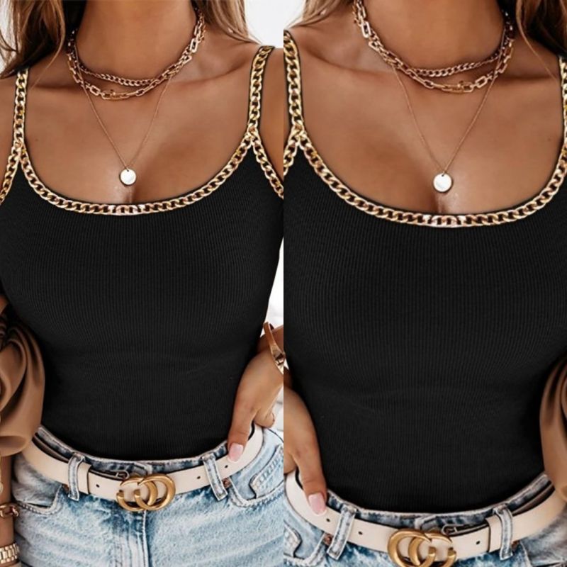 Kadın Askılı U Yaka Zincir şeritli Kaşkorse Bluz