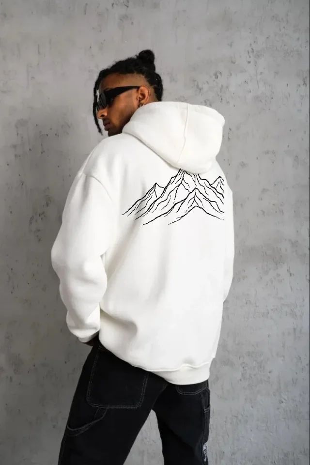 Erkek Nihilist Penguen Özel Tasarım Oversize Kapüşonlu Sweatshirt - Beyaz