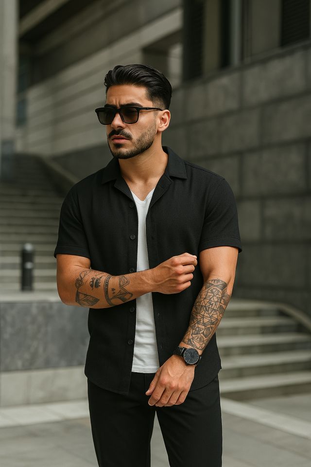 Erkek Kısa Kollu örme Kumaş Pamuklu Gömlek