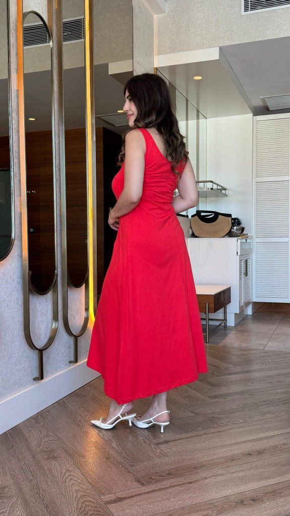Kadın Askılı Yuvarlak Yakalı Viskon Elbise