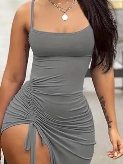 Kadın Kolsuz Ip Askılı Yandan Büzgülü Uzun Viskon Elbise