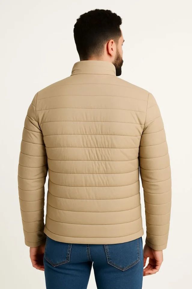Erkek Mikro Su İtici Kapitone Baskılı Astarlı Fermuarlı Bomber Mont - Bej
