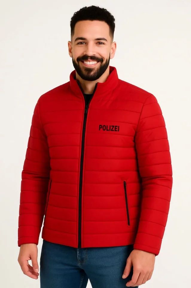 Erkek Mikro Su İtici Kapitone Baskılı Astarlı Fermuarlı Bomber Mont - Kırmızı