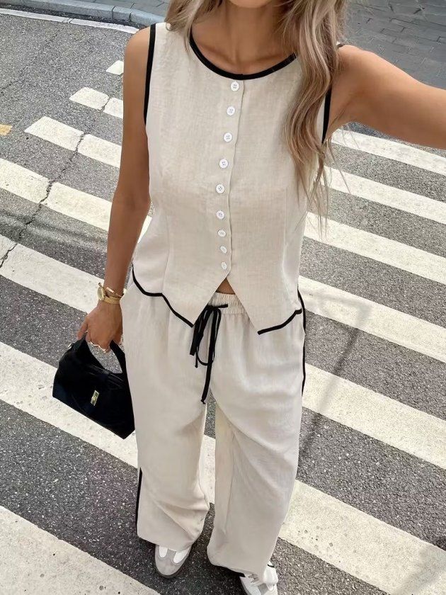 Kadın Kolsuz önü Düğmeli Yelek Ve Pantolon Ikili Takım