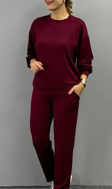 Kadın Uzun Kollu Bisiklet Yaka Viskon Iki Iplik Bluz Ve Pantolon Ikili Takım