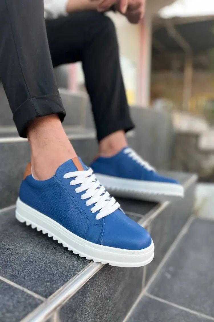 Zengin mavi tonu ve topuk kısmındaki taba rengi deri detayıyla modern bir kontrast oluşturan bu model, %100 deri kalitesini sportif bir tasarımla birleştiriyor. Yan kısımlardaki özel perfore (delikli) doku, deri kalitesini şık bir detayla tamamlarken hava sirkülasyonunu maksimize eder. Dayanıklı dikişleri ve yüksek kaliteli beyaz tabanıyla hem uzun ömürlü bir kullanım hem de her adımda üst düzey rahatlık vadeder.