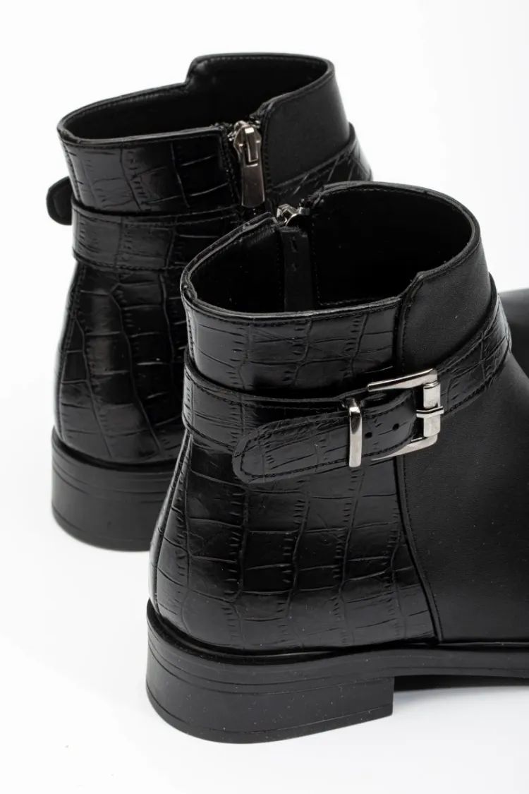 Siyaha Kroko Toka Aksesuarlı Fermuarlı Günlük Kadın Bot