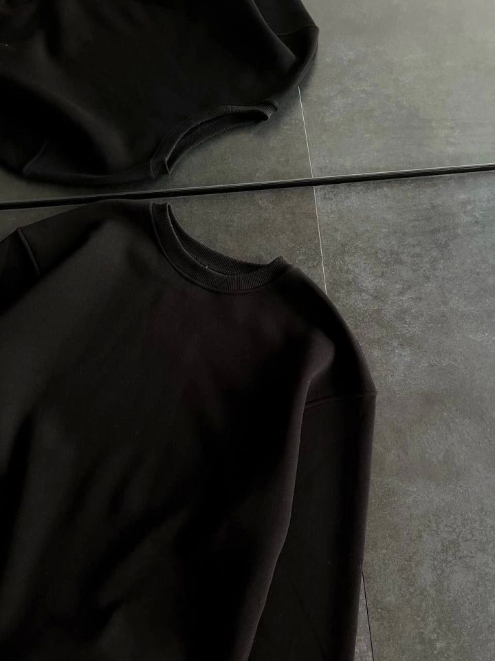 Kışlık Bisiklet Yaka Üç İplik Basic SweatShirt - Siyah