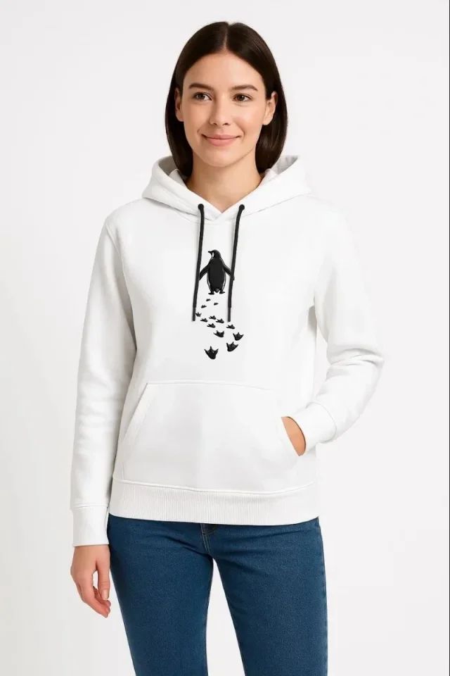 Nihilist Penguen Temalı Oversize Kapüşonlu Sweatshirt - Beyaz