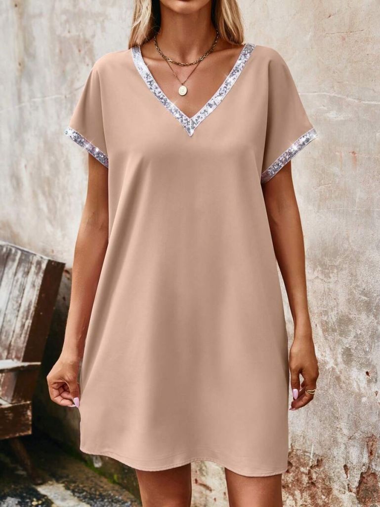 Kadın Yaka Ve Kol Pul Payet şeritli Ithal Krep Elbise