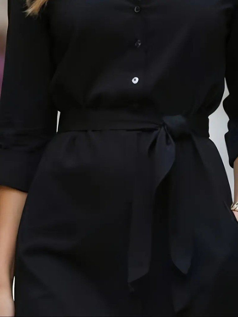 Kadın Uzun Kollu Yakalı Belden Kuşaklı Midi Trikoton Elbise