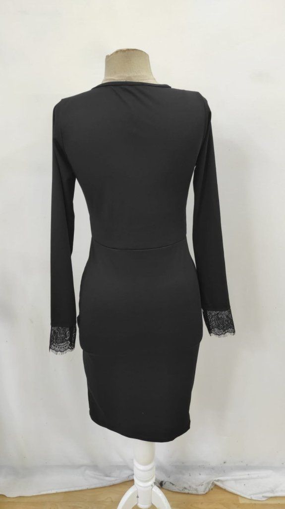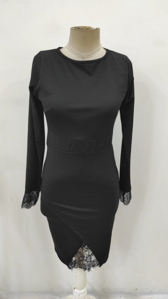 Kadın Uzun Kollu Bisiklet Yaka önden Dantel Ve Yırtmaç Detaylı Dalgıç Elbise