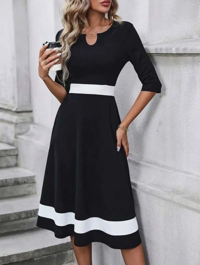 Kadın Truvakar Kol V Yakalı Janjan Krep Midi Elbise