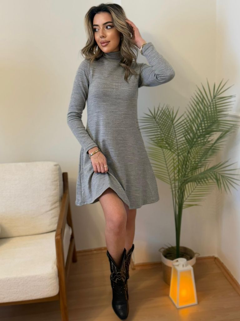 Kadın Uzun Kollu Balıkçı Yaka Salaş Kusa Akrilik Elbise