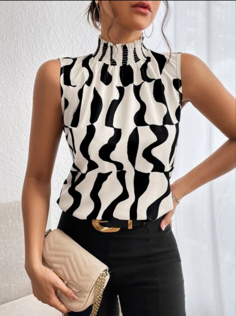 Kadın Kolsuz Balıkçı Yaka Desenli Süprem Bluz