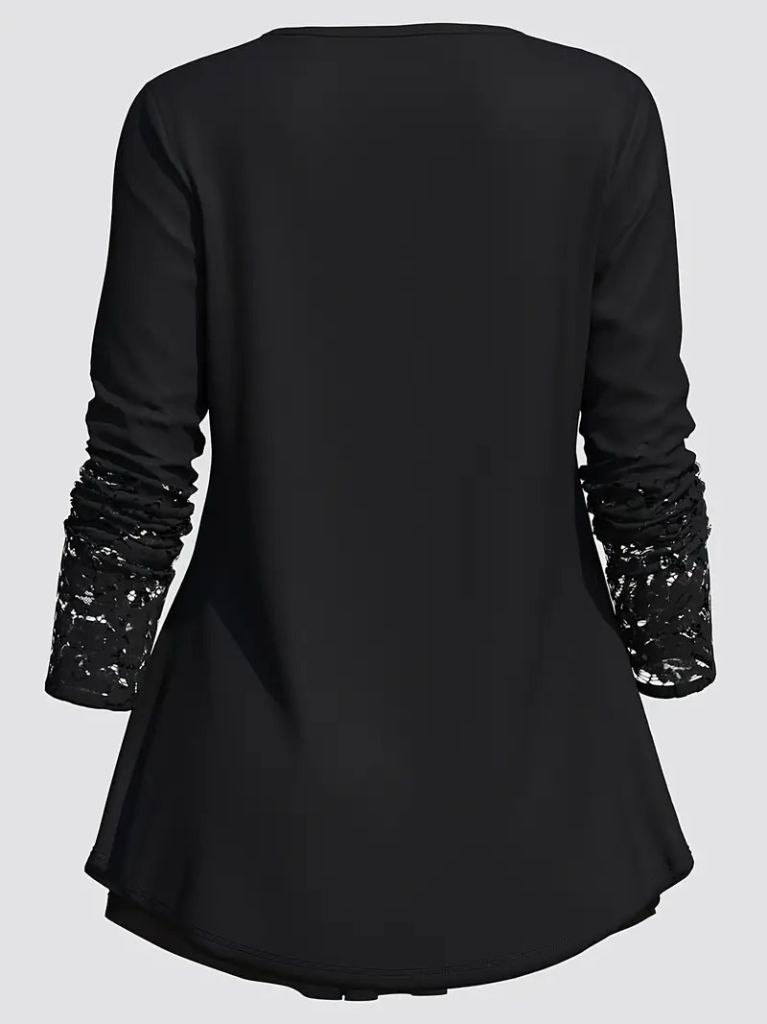 Kadın Uzun Kollu Dantel Detaylı Düğmeli Viskon Bluz