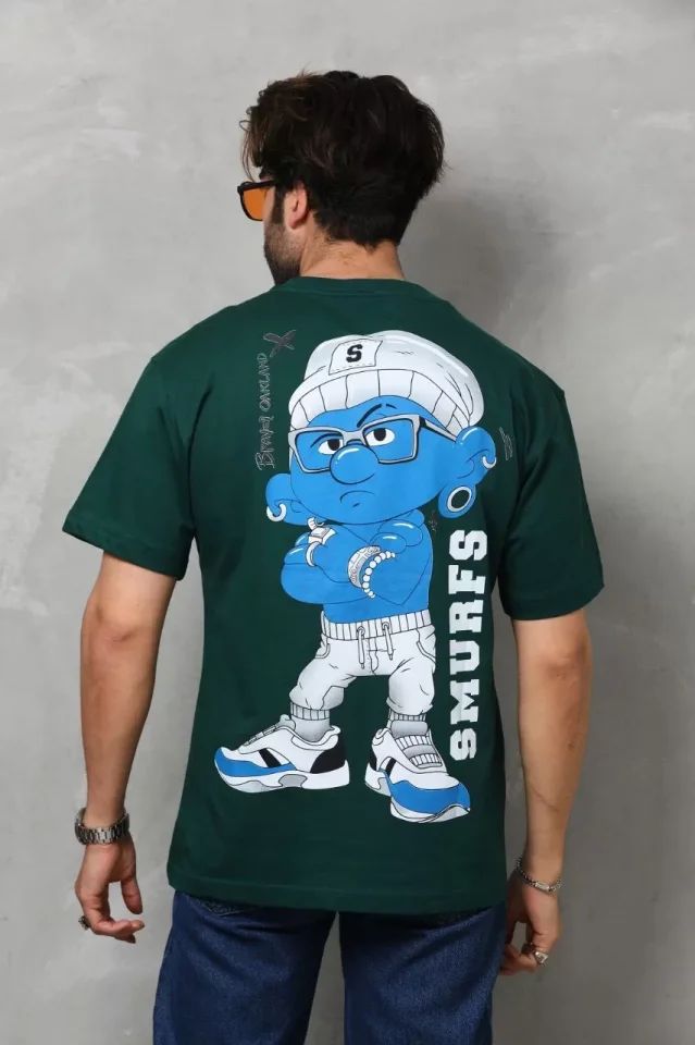 Unisex Basic Bisiklet Yaka Oversize T-Shirt - Yeşil