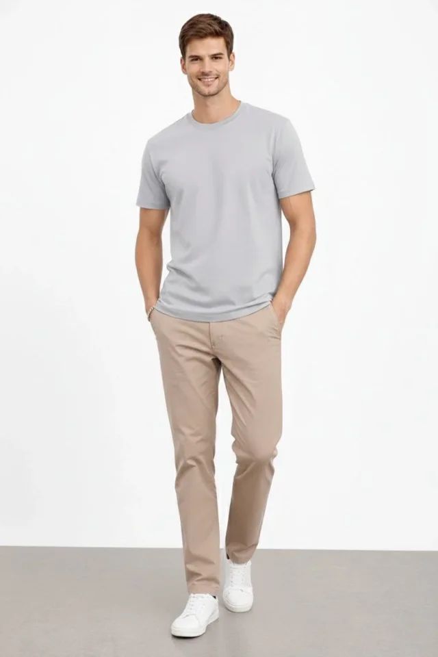 Erkek Bisiklet Yaka Tişört Regular Kalıp Basic Pamuklu Günlük Kullanım T-shirt - Gri