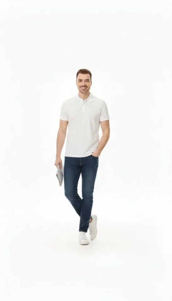 Erkek Pike Kumaş Düğmeli Yaka Regular Fit Günlük Kısa Kol Tişört T-shirt - Beyaz