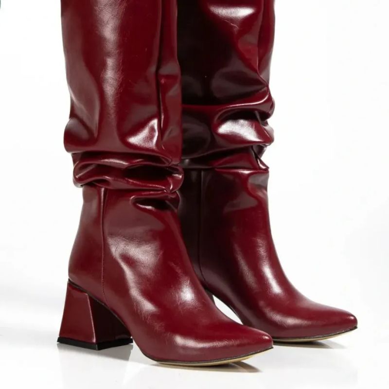 Bordo Kırışık Rugan Çizme