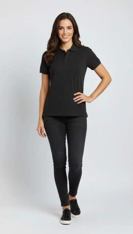 Pike Kumaş Düğmeli Yaka Regular Rahat Günlük Kısa Kol Tişört T-shirt - Siyah