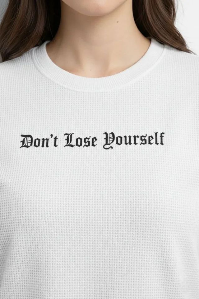 Wafıl Kumaş Tişört Regular Kalıp Bisiklet Yaka Baskılı Günlük Basic T-Shirt - Beyaz