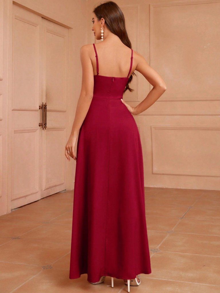 Kadın Ip Askılı Kruvaze Yakalı Yırtmaçlı Uzun Ithal Krep Elbise